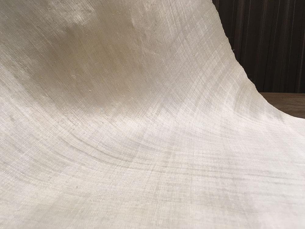 灰汁で煮る工程を経ていない生引き芭蕉繊維は、より白く、光沢に富み、その布は華やかで気品に満ちています。