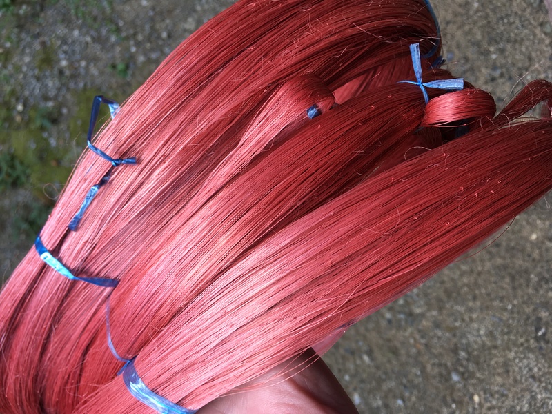 その後、染液に浸しては乾かす工程を何度も繰り返しながら、少しずつ色を重ね、思い描いた色合いへと染め上げていきます。