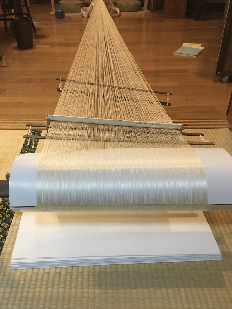 仮筬通し(機織り機にかける準備)から完成まで