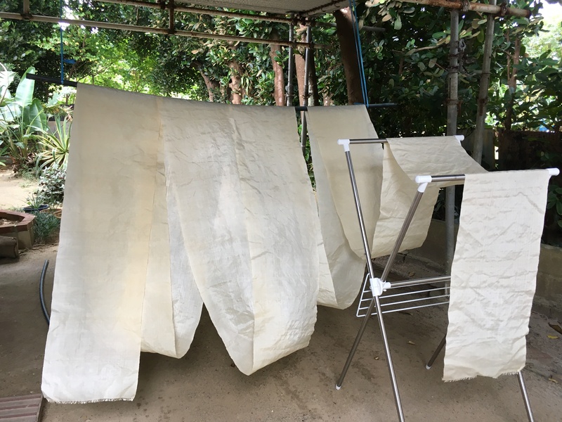 織り終えた布を洗濯し、ようやく一枚の芭蕉布が完成します。