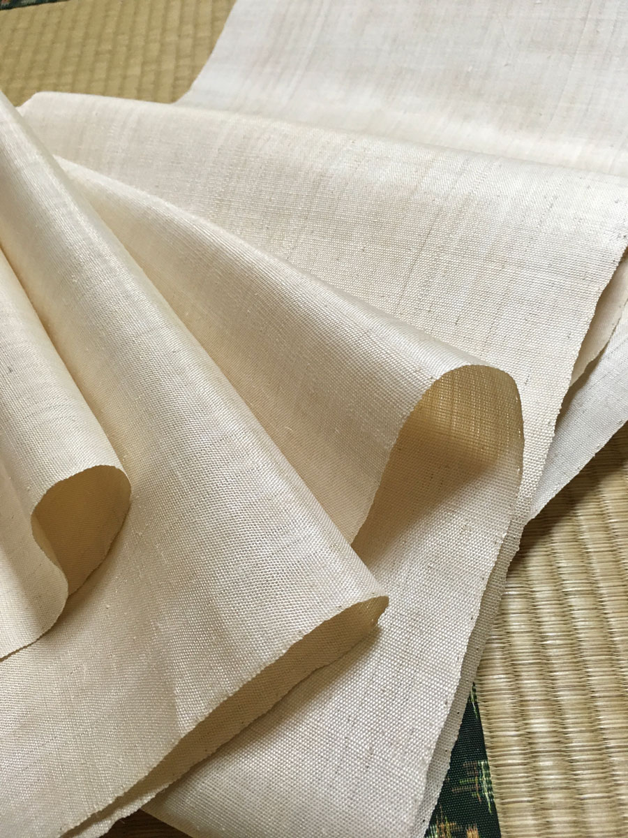 灰汁で煮る工程を経ていない生引き芭蕉繊維は、より白く、光沢に富み、その布は華やかで気品に満ちています。