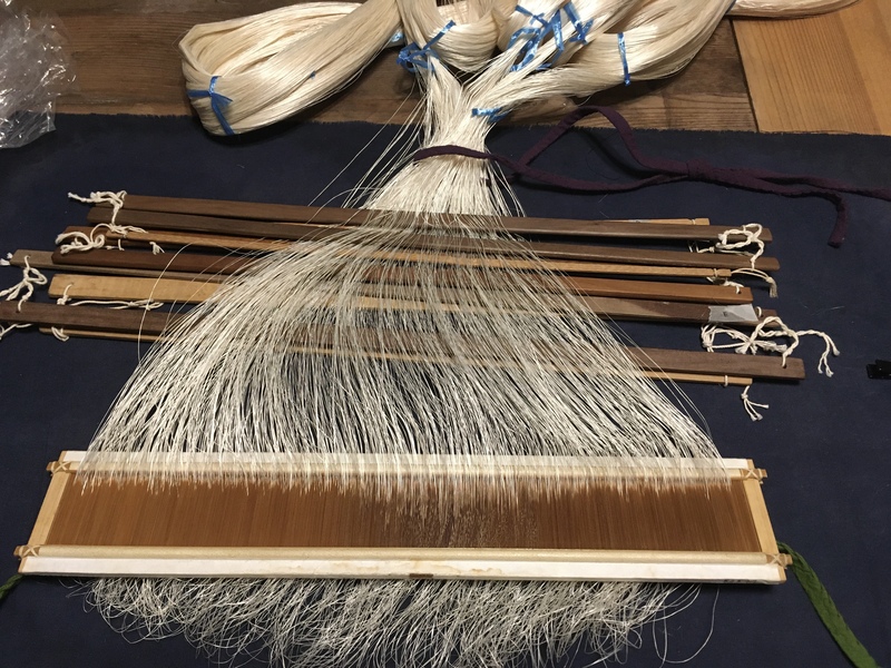 仮筬通し(機織り機にかける準備)から完成まで